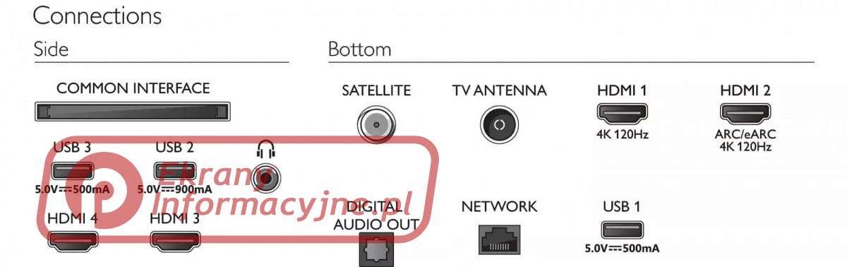 Funkcje specjalne: HbbTV Wbudowana funkcja Asystent Google Współpraca z usługą Alexa Filmy z Google Play Wyszukiwanie Google YouTube Netflix Apple TV BBC iPlayer Filmy Amazon Prime Disney+ Aplikacja Fitness Muzyka YouTube Ambilight Aurora