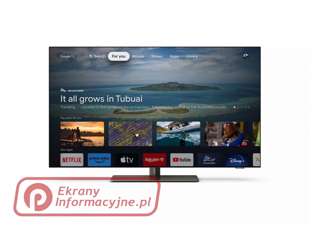 Funkcje specjalne: HbbTV Wbudowana funkcja Asystent Google Współpraca z usługą Alexa Filmy z Google Play Wyszukiwanie Google YouTube Netflix Apple TV BBC iPlayer Filmy Amazon Prime Disney+ Aplikacja Fitness Muzyka YouTube Ambilight Aurora