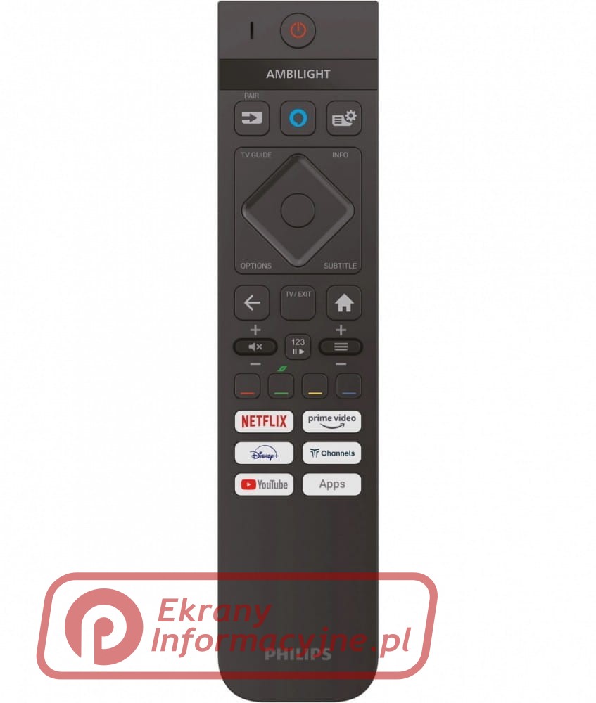 Bezproblemowa zgodność z systemami Matter i Control4 ułatwia integrację telewizora 4K Ambilight z istniejącą siecią inteligentnego domu. Za pomocą pilota do telewizora można również sterować dekoderem telewizji satelitarnej lub kablowej i aktywować wbudowaną Alexę. Telewizor jest również zgodny również z inteligentnymi głośnikami Google.