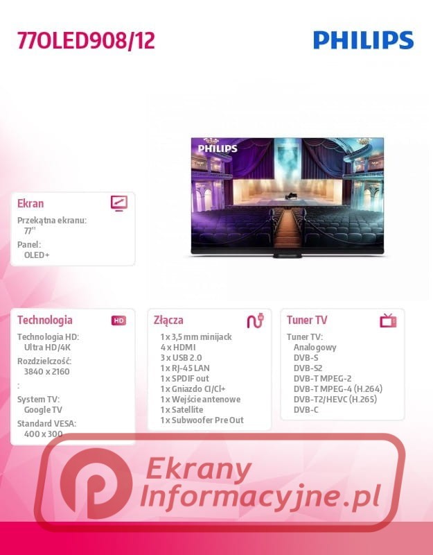Philips Telewizor 77 cali OLED+ 77OLED908/12