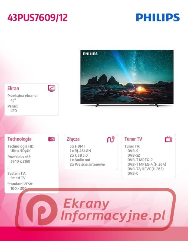 Philips Telewizor LED 43 cale 43PUS7609/12