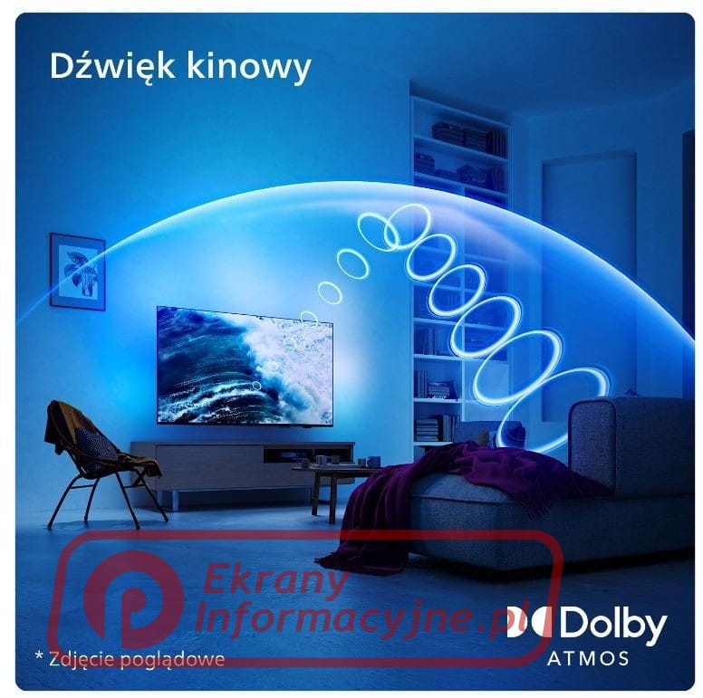 Zanurz się w tym wszystkim dzięki temu bogatemu w funkcje telewizorowi z systemem Ambilight! Otrzymujesz wspaniały obraz, realistyczny dźwięk Dolby Atmos i płynną rozgrywkę. Niezależnie od tego, co oglądasz lub w co grasz, Ambilight zwiększa emocje zapewniając wieczór telewizyjny jak żaden inny.