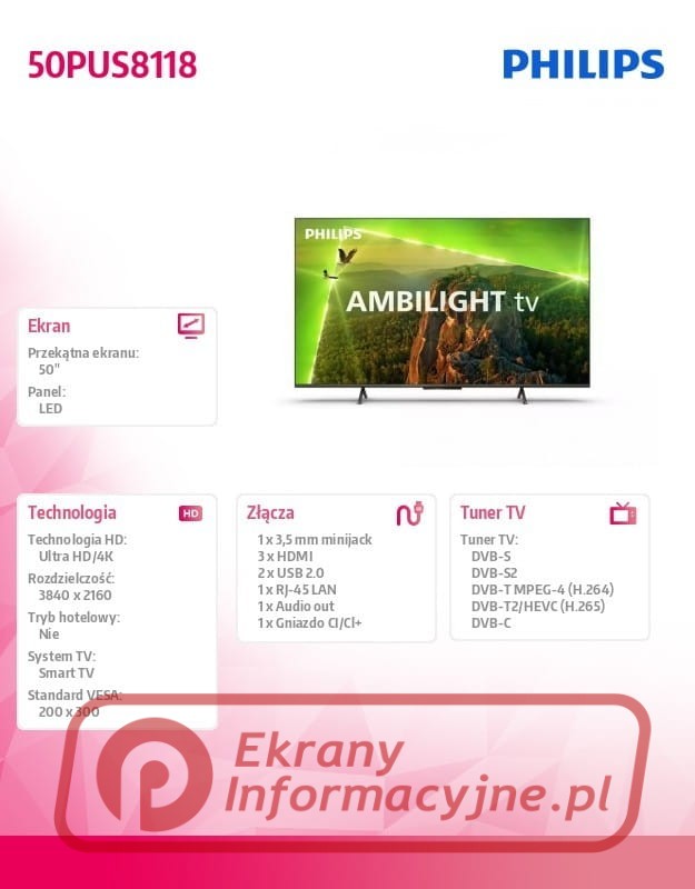 Philips Telewizor LED 50 cali 50PUS8118/12