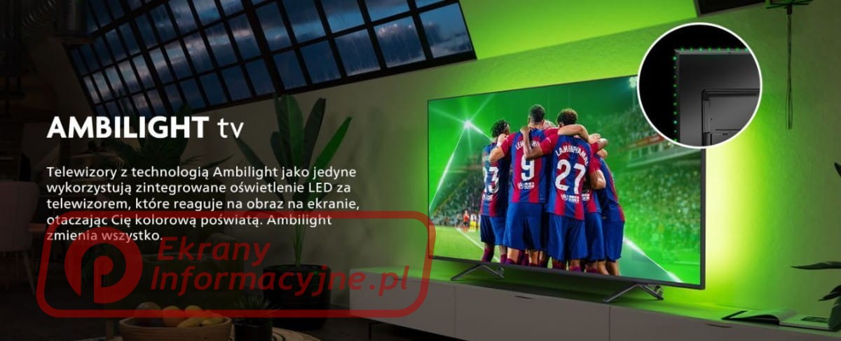 Telewizory z funkcją Ambilight to jedyne telewizory z wbudowanym oświetleniem LED za ekranem, które reaguje na to, co oglądasz, zanurzając Cię w aureoli kolorowego światła. Twój telewizor wydaje się większy, a Ty bardziej zagłębiasz się w swoje ulubione programy, filmy i gry.