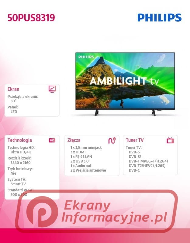 Philips Telewizor LED 50 cali 50PUS8319/12
